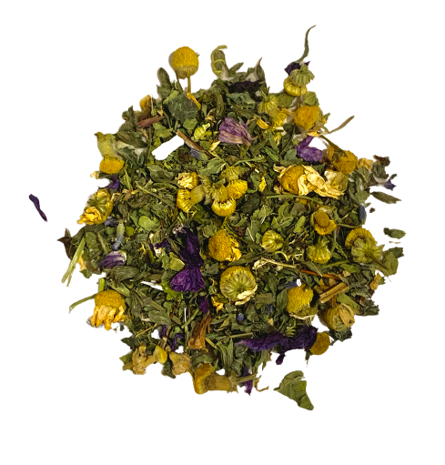 A calm, soothing blend of sweet chamomile, passionflower and lavender with uplifting lemon balm.